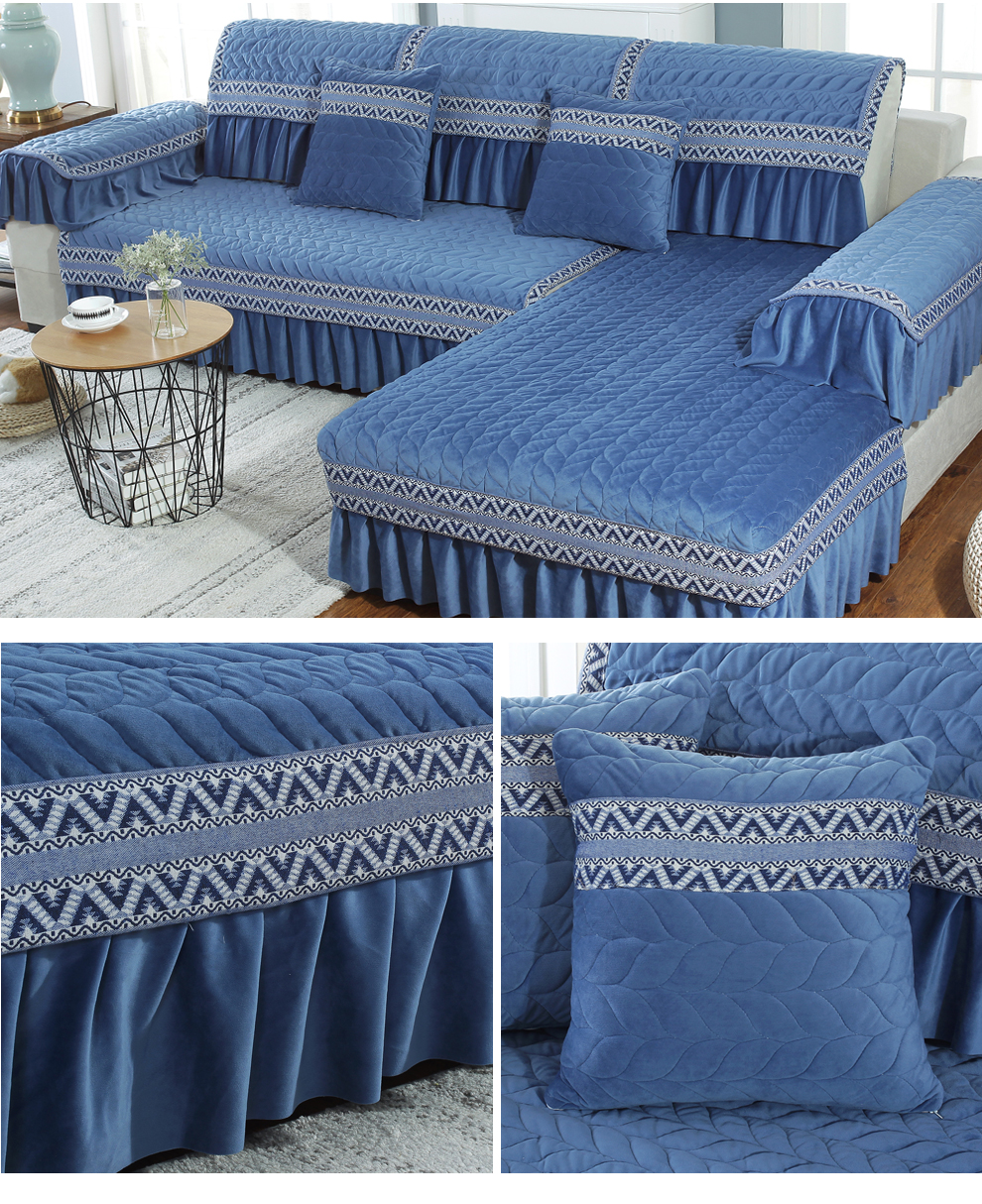 ヨーロッパ式ソファマット高級なラグジュアリー滑り止めクッションカバー四季通用客間布芸123組み合わせアメリカンソファクッション湖面の青い58*65 cm穂付手ぬぐい