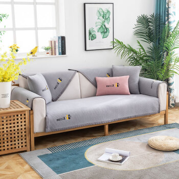 北欧ins田園布芸ソファーカバー全カバーソファタオル雪尼爾ソファ布クッション四季通用のシングルソファータオル全カバーカバークッション冬防塵滑り止めソファー毛布が麦田-灰緑180*320 cmを通ります。