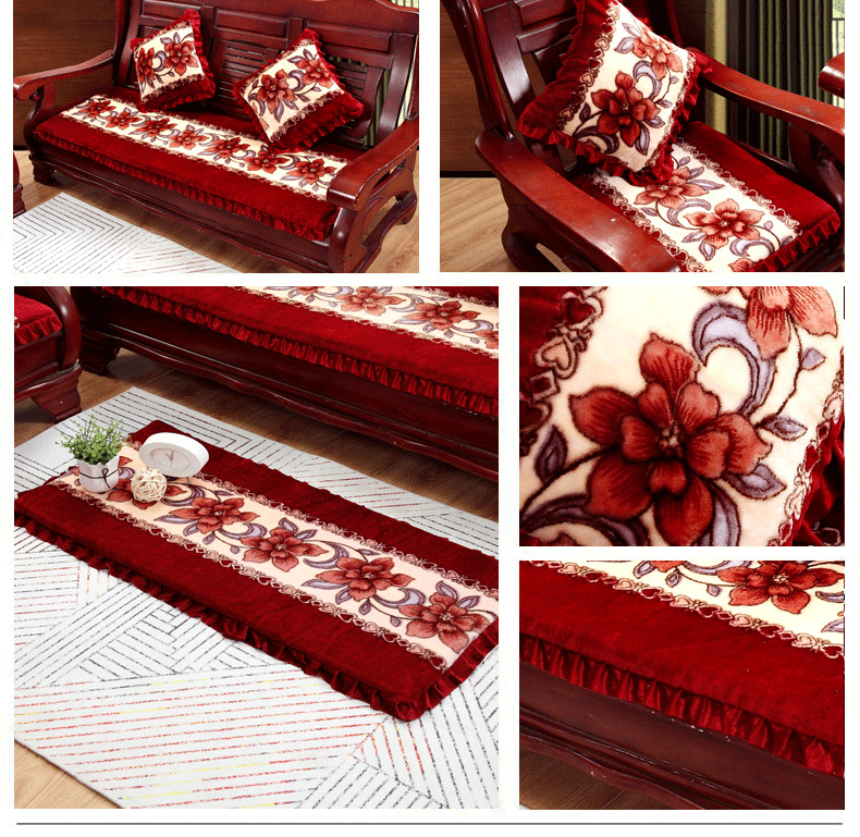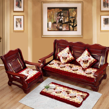 マンタの家は紡いで厚い冬の木のソファーのクッションを持っています。背中付きの旧式滑り止めの木の四季折々の赤い木通用の三人スポンジクッション蝶恋花52*160 cm/三人乗りの席です。