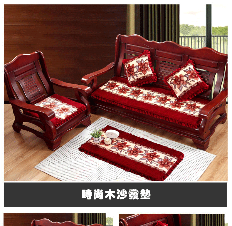 マンタの家紡は厚い冬の木のソファマットを持っています。背中付きの旧式滑り止めの木を持っています。四季折々の赤い木に通用する三人のスポンジクッション。朝顔の花-メートル52*150 cm/三人乗りの席です。