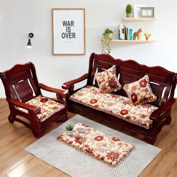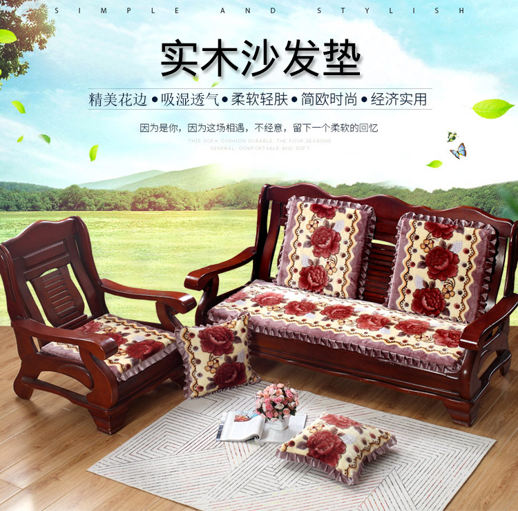 商品名称曼田家紡厚い冬の木のソファーのクッションベルトは背中付きの旧式滑り止め木の四季折々の木通用三人スポンジクッション朝顔-メートル52*150 cm/三人乗りの席です。