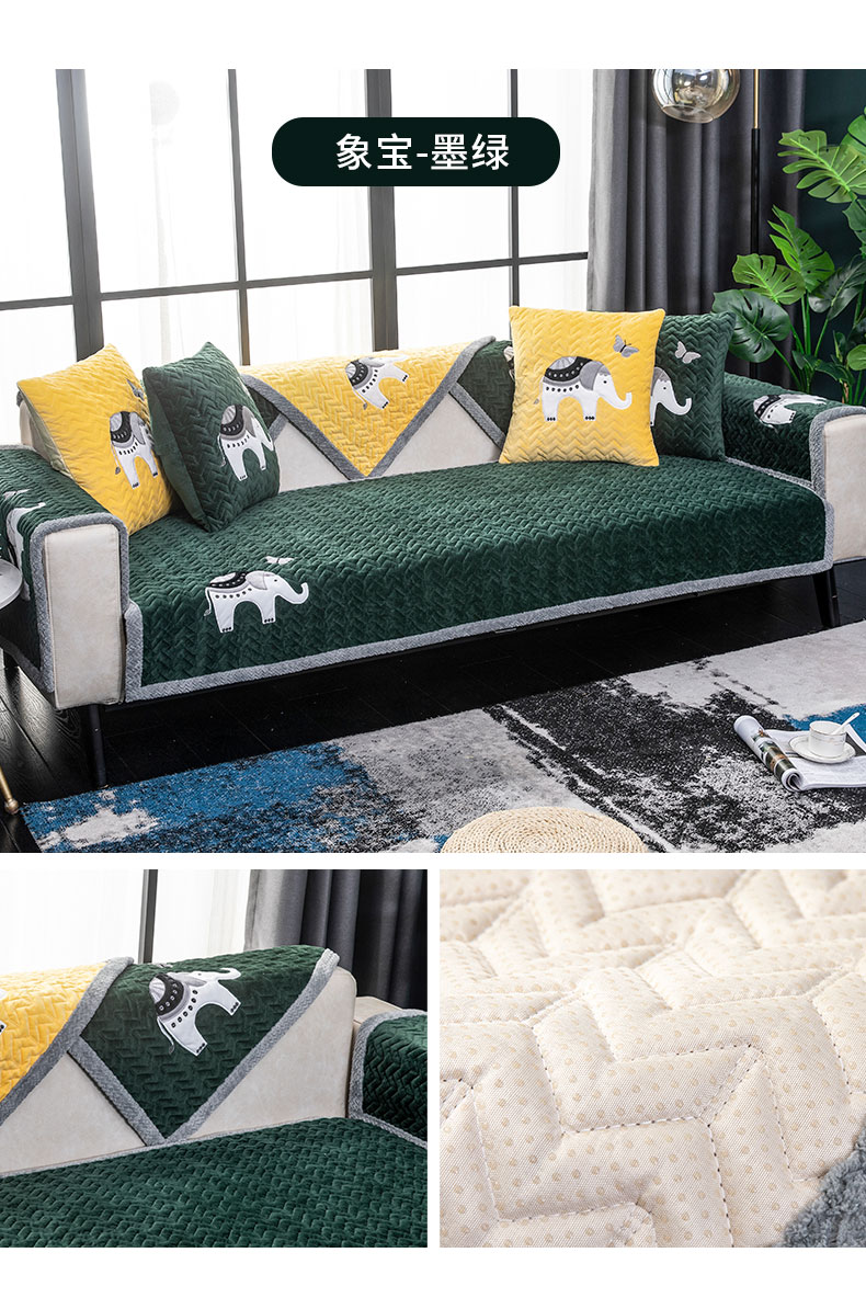 一生ソファマットスーツに厚いソファカバーを加えて、全カバーの毛の絨毯クッション秋冬の布芸滑り止めソファタオルカバーの純色の新中国式三人の組み合わせで、実木ソファ通用のトウモロコシの绒の白鸟の刺繍浅いグリーンのソファマットをオーダーメイドして、カスタマ...