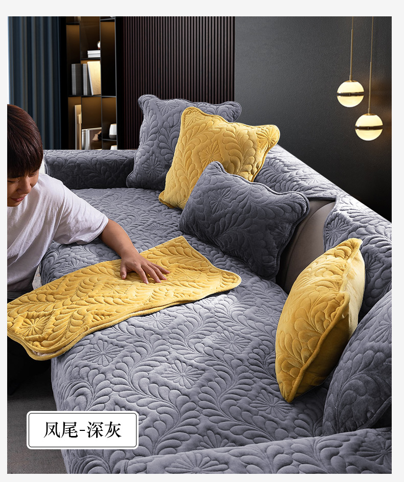 一生ソファマットスーツに厚いソファカバーを加えて、毛の絨毯クッションをカバーします。秋冬の布芸滑り止めソファカバーの純色の新中国式三人セット。