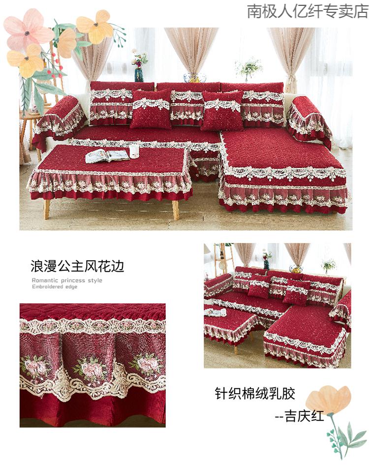 一生ソファマットセット厚い冬のソファカバーを加えて、全裸の新中国式ソファに座るマット付き滑り止めソファタオル全カバー毛绒の純色レースの垂れ下がった辺の水晶の絨毯のサイズをカスタマイズします。カスタマーサービスに連絡してください。