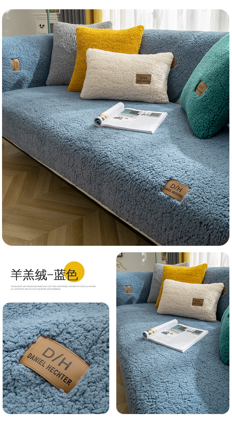 南極人家紡欧式ソファクッション冬北欧毛绒布芸クッション滑り止め現代客間水晶絨ソファカバー万能カバー水晶絨毯天藍70*70(手すりまたはクッション)