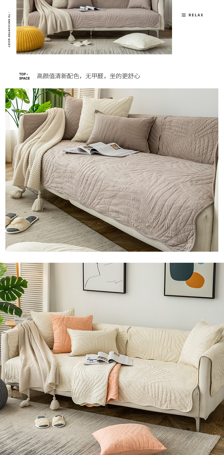 荀至美北欧シンプル純色ソファマット四季純コットン布芸滑り止め座布団冬通用現代ソファカバーカバーバナナ葉-灰色70*70 cm手すり背もたれタオル