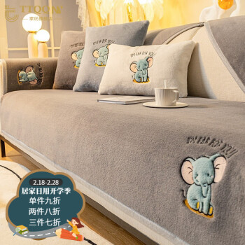 TTQQNYブランド2021冬季珊瑚法兰内尔ソファマット简约现代毛法兰内尔ソファカバー加厚防滑座布団冬款盖巾乐迪-深灰定制专拍联系客服【图价格ブランド报价】-