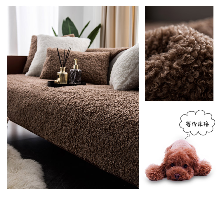 氷彩色ソファマット冬季毛法兰内尔加厚防滑四季通用美式轻奢高级ソファカバー小卷毛泰迪小卷毛-チョコレート色30*50 CM抱き枕カバー