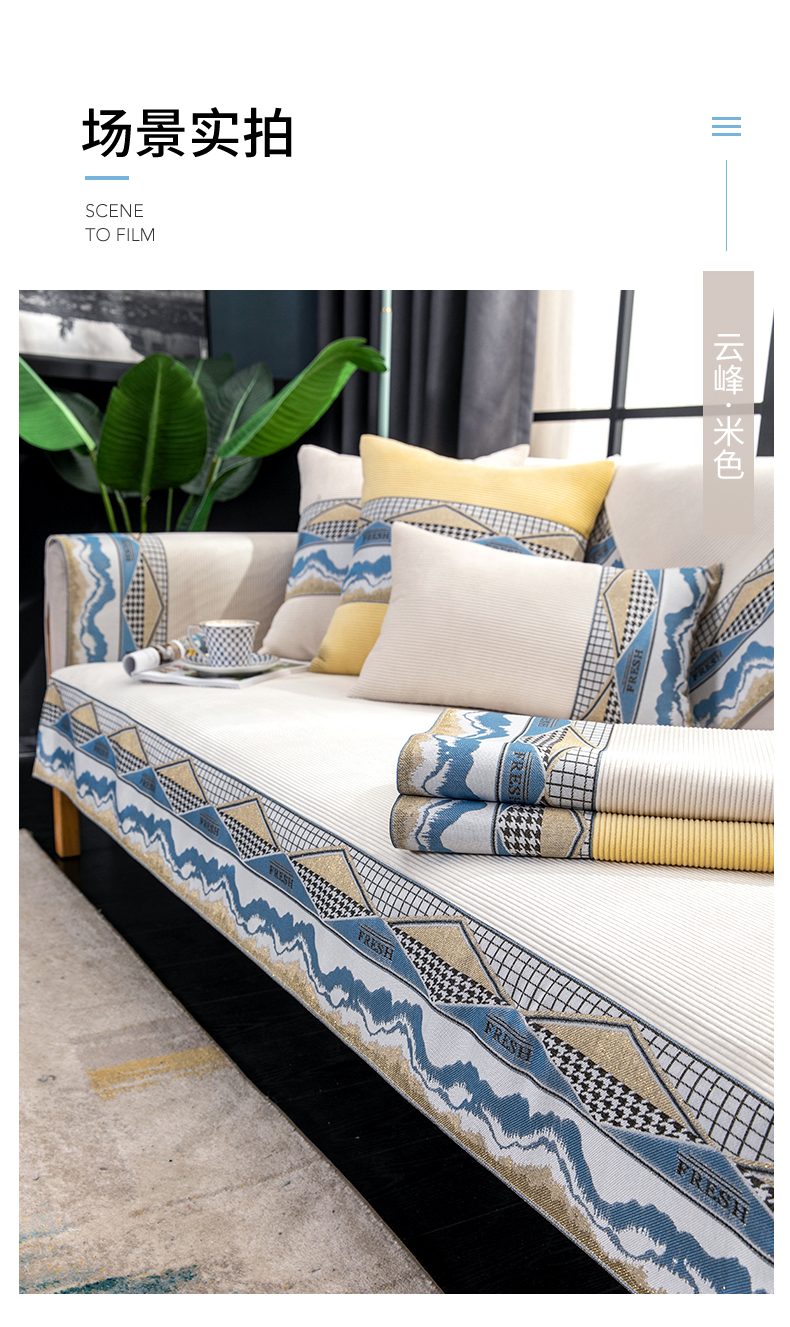 暖色沙发垫冬季加厚毛フランネル防滑坐垫ファブリックソファー套罩套装定制 y云峰-米色 90宽*210cm长一片【图片 价格 品牌 报价】-