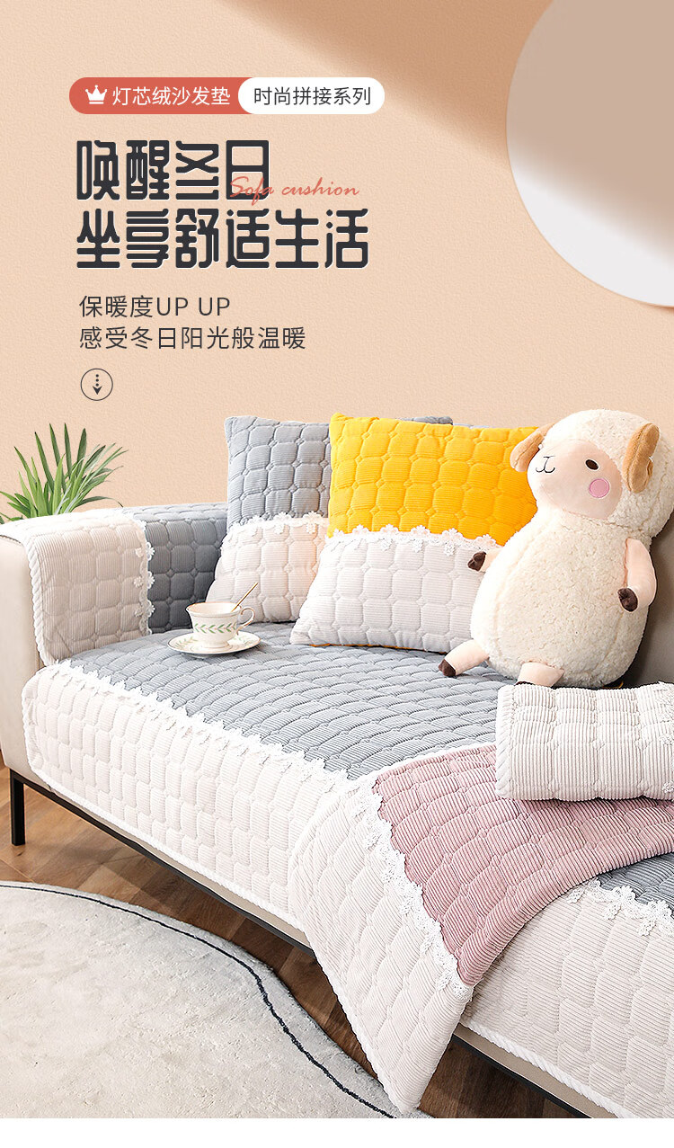 【钟爱一生沙发垫】钟爱一生 沙发垫坐垫冬季加厚毛フランネルソファーカバー罩 防滑沙发盖巾红木沙发坐垫子 灯芯フランネル拼接(浅灰色)90*90cm【行情 报价 价格 评测】-
